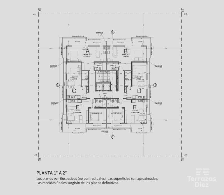 - Las unidades de dos ambientes aproximadamente miden 42 a 43 m2 cubiertos con balcon terraza de 15 a 20 m2