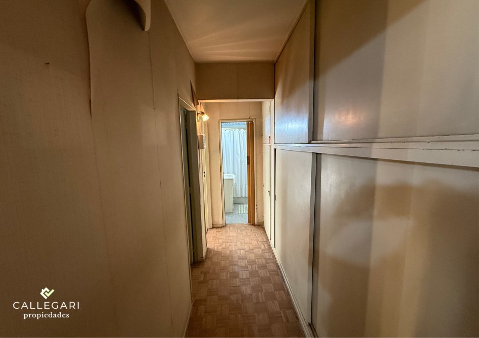 Dispone de dos habitaciones, un baño completo, y un hall de distribución con mueble empotrado, que brinda un plus de guardado y organización.
